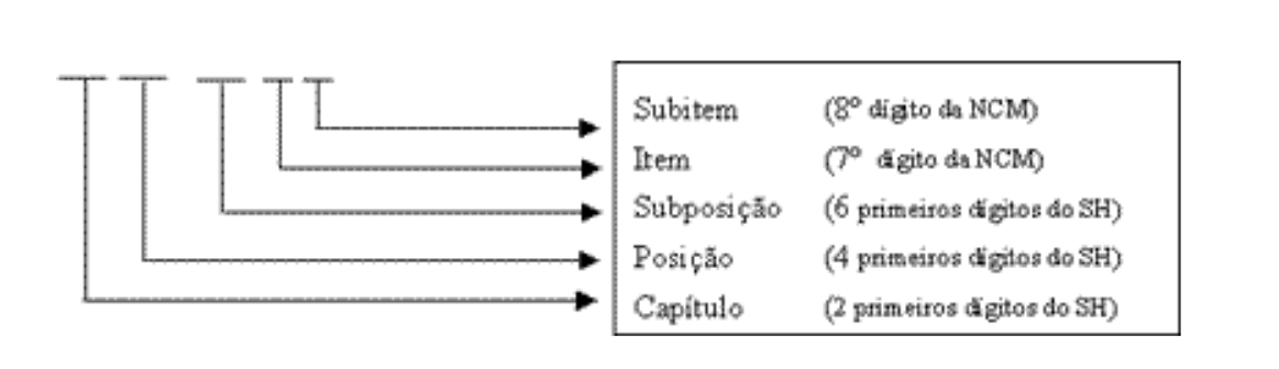 Segundo o Ministério do Desenvolvimento, Indústria e Comércio Exterior a sistemática de classificação dos códigos na Nomenclatura Comum do MERCOSUL (NCM) obedece à seguinte estrutura: