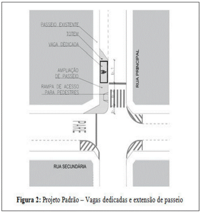 a) Implantação: a vaga dedicada e sua respectiva extensão de passeio devem ser implantados em vias que possuam faixa de estacionamento;