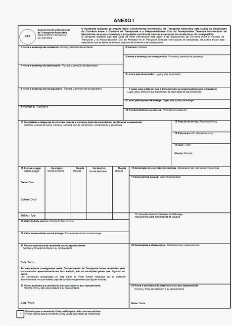 Os procedimentos abaixo devem ser observados no preenchimento do Conhecimento Internacional de Transporte Rodoviário - CRT.