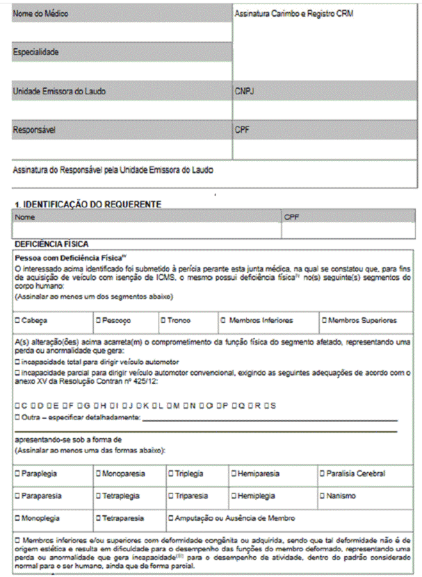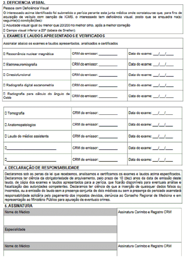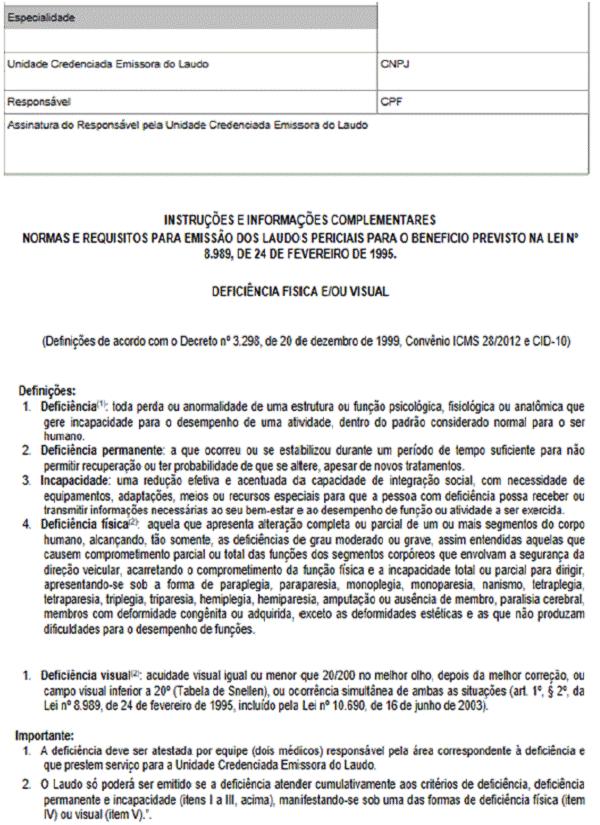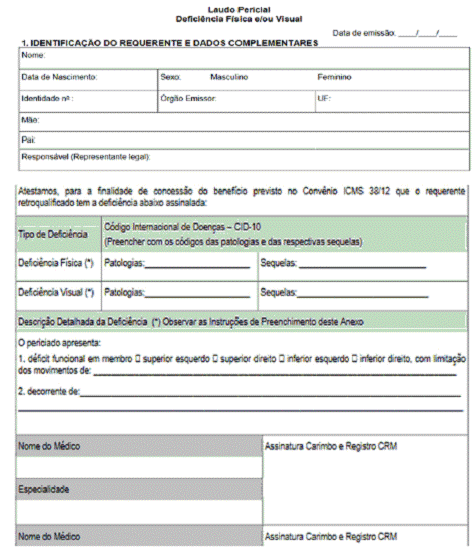 Art. 2º O Laudo de Avaliação Deficiência Física ou Visual, constante no Anexo 5.0 (Modelos de Documentos Fiscais) do RICMS, passa a vigorar com a seguinte redação:
