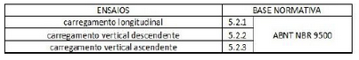 Tabela 1 - Ensaios para adaptação de dispositivo de fixação de contêiner
