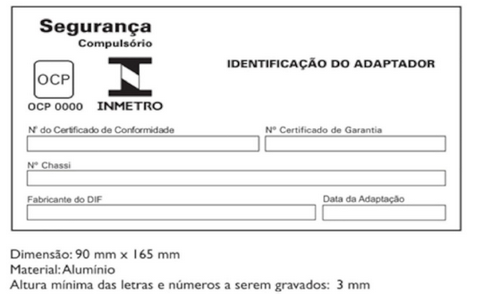 11.3 O Selo de Identificação da Conformidade, indica que os serviços estão em conformidade com a Norma ABNT NBR 9500 e deve ser aposto, pelo adaptador ou empresa concessionária, no chassi do veículo adaptado com DIF, de forma visível e legível, em forma de plaqueta de identificação.