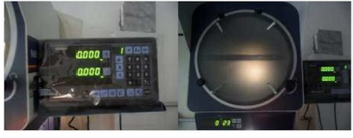 e) Alinhar o eixo X do projetor com a borda inferior da imagem da perna e zerar o medidor; deslocar para cima o eixo X e alinhar com a borda superior da perna;