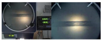 i) Deslocar o eixo Y até o fio de número igual à composição da camada. Ex.: Na análise visual da camada foram verificados nove fios, então o comprimento do passo é a distância percorrida entre o ponto zero (meio do primeiro fio) até o meio do décimo fio.