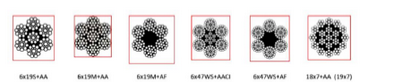 Classe de cabo de aço Alma de fibra Alma de aço