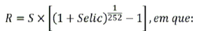 III - r = acréscimo à Taxa Selic, correspondendo a 4% (quatro por cento) ao ano, expresso com quatro casas decimais; e