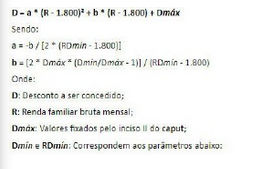 § 2º Nos casos de operações com pessoas físicas com renda familiar bruta mensal situada no intervalo entre R$ 1.200,01 (um mil e duzentos reais e um centavo) e R$ 2.000,00 (dois mil reais), o desconto a ser concedido será calculado de acordo com a fórmula a seguir especificada: