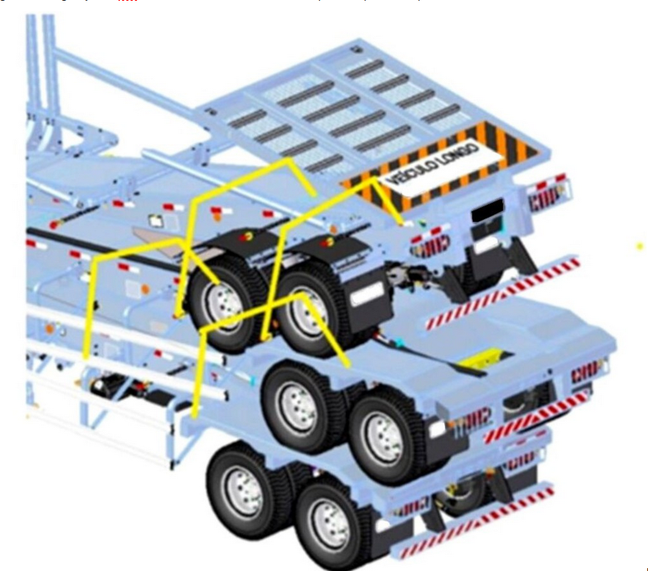 12 - dispositivos e equipamentos dobráveis, concebidos para reduzir a resistência aerodinâmica ao avanço, desde que não aumentem o comprimento da zona de carga e sua saliência em relação ao ponto mais à retaguarda do veículo não exceda 500 mm. Deve ser possível retrair esses dispositivos com o veículo estacionado, a fim de que não seja ultrapassado o comprimento máximo autorizado, nem seja limitada a capacidade do veículo ser utilizado para o transporte intermodal.