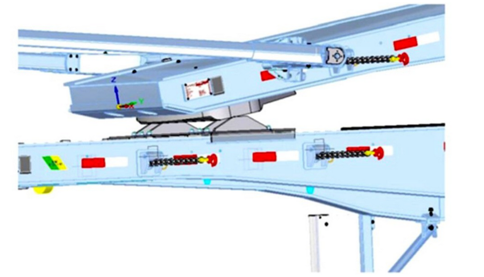 Figura 4: Amarração das cargas na parte da frente, por meio de sistema de pino-rei e quinta roda e de pino específico