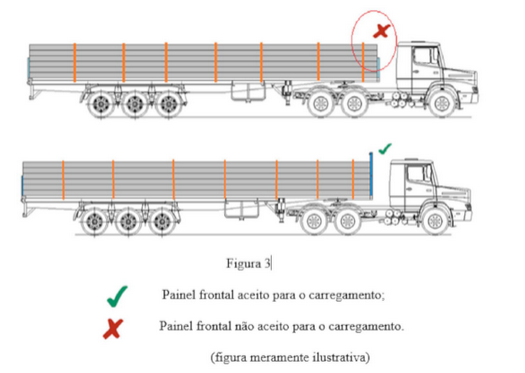 Parágrafo único. Na hipótese do caput, fica proibida a circulação de veículos cuja carga ultrapasse a altura do painel frontal e exista a possibilidade de deslizamento longitudinal da parte da carga que está acima do painel frontal (Figura 3).