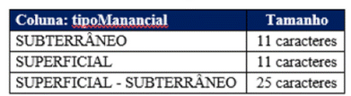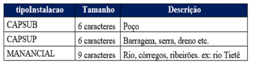 Tabela 6: Dicionário de Variáveis: Arquivo do Cadastro dos Pontos de Captação