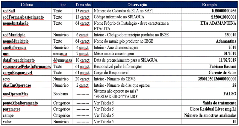Tabela 4: Dicionário de Variáveis: Arquivo do Amostragem do Sistema de Abastecimento