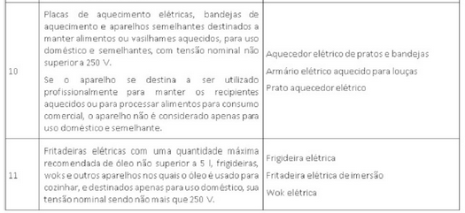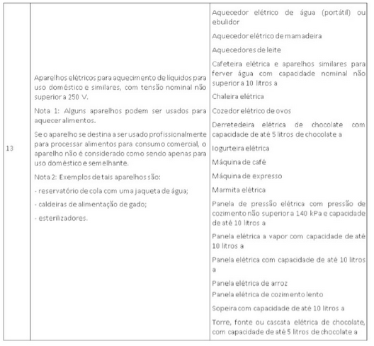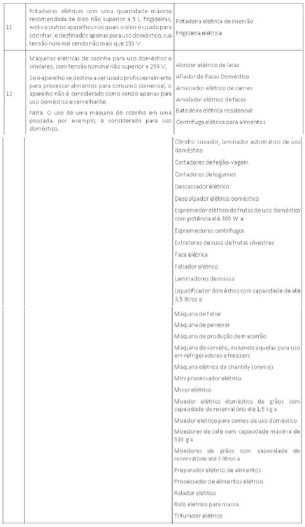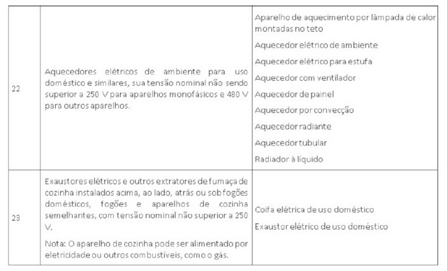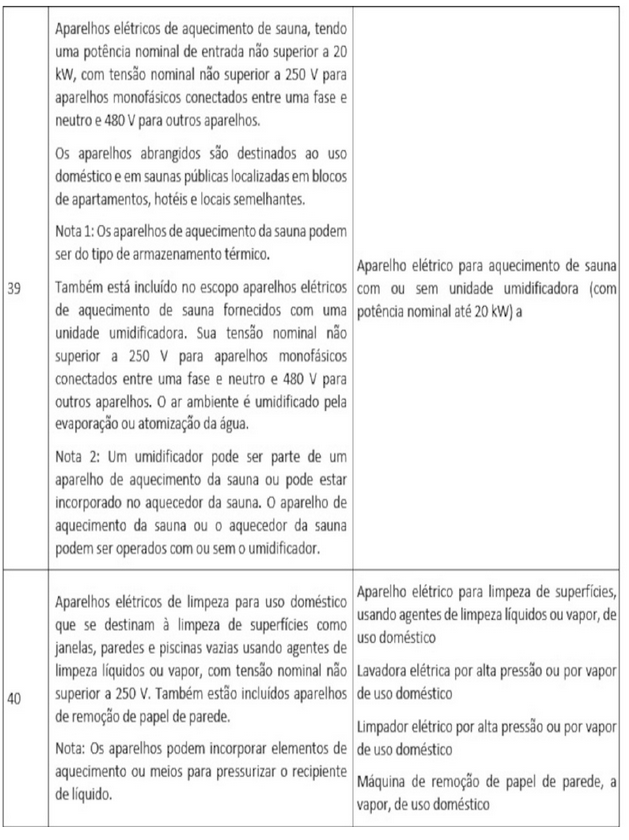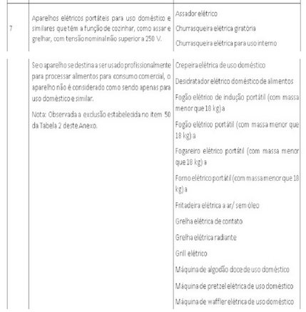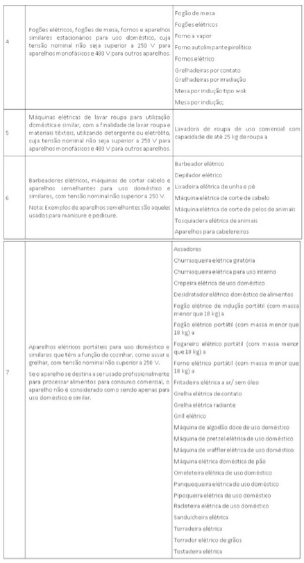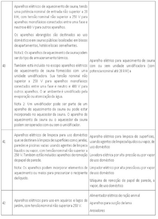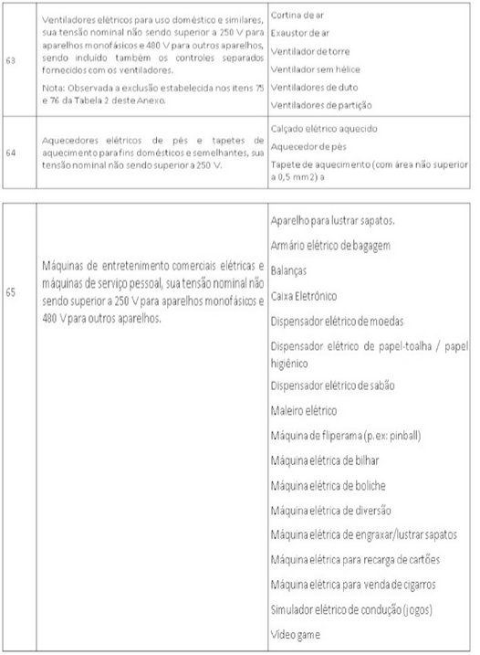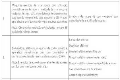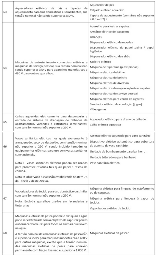 Tabela 2 - Aparelhos não pertencentes ao Escopo