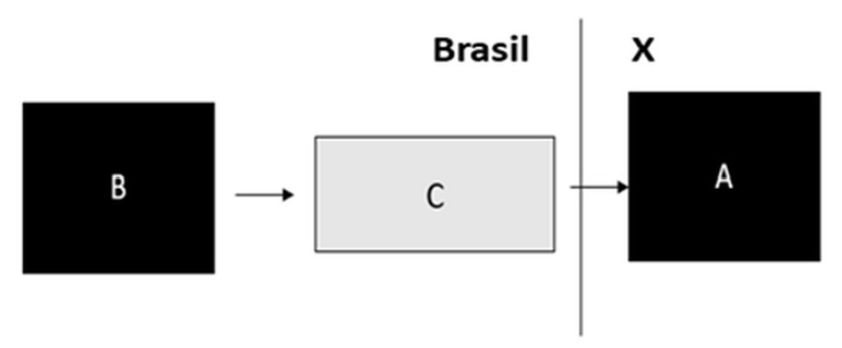 Exemplo "2" "A" e "B" são partes relacionadas pertencentes ao grupo multinacional "AB". "A" é residente na jurisdição X. "B" é pessoa jurídica residente no Brasil. "C" é instituição financeira também residente no Brasil e não faz parte do grupo "AB".
