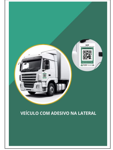 I - O adesivo QR Code deve ser adesivado na lateral da cabine do motorista (porta), para fácil identificação da empresa através do número do Cadastro emitido pela SCSP, placa do veículo credenciado e demais informações pertinentes à atividade.