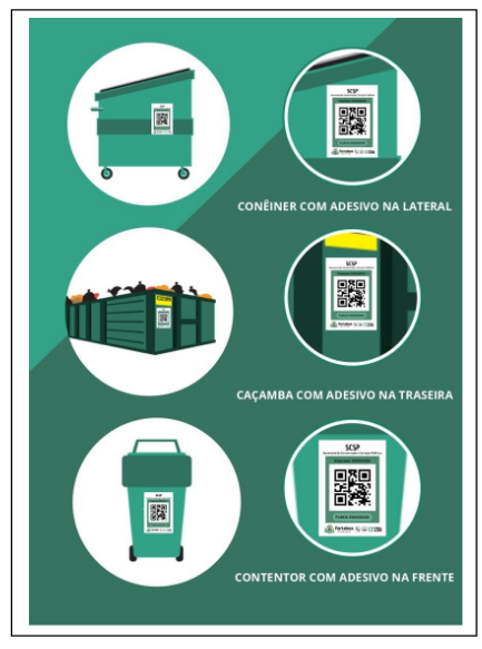 Art. 5° - O QR Code deverá ser fixado em etiqueta adesiva que possibilite a utilização desta tecnologia e o consequente rastreio para o controle e integração dos dados de empresas credenciadas pela Secretaria Municipal da Conservação e Serviços Públicos (SCSP).