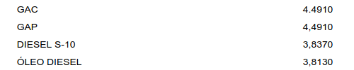 De acordo com os Atos COTEP/PMPF Nº 21 DE 09/11/2018, Nº 1 de 09/01/2019, Atos COTEP/PMPF Nº 1 DE 09/01;2019, Atos COTEP/PMPF nº 2 de 24/01/2019 e Atos COTEP/PMPF n º 3 de 08/02;2019, foram fixados os PMPF, para o Estado do Pará para os produtos,GAC, GAP, DIESEL S-10 e ÓLEO DIESEL.