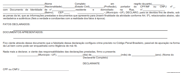 V – Declaração da veracidade das informações prestadas, assinada pelo representante legal do empreendimento/atividade conforme diretrizes do ANEXO I.