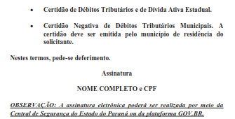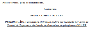 OBSERVAÇÃO: A assinatura eletrônica poderá ser realizada por meio da Central de Segurança do Estado do Paraná ou da plataforma GOV.BR.