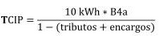 § 1° A Tarifa Convencional de Iluminação Pública (TCIP) corresponde ao valor de 10 kWh vigente para a tarifa convencional do subgrupo B4a - Iluminação Pública, acrescida dos encargos e tributos, e será calculada através da seguinte fórmula: