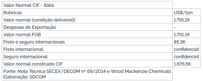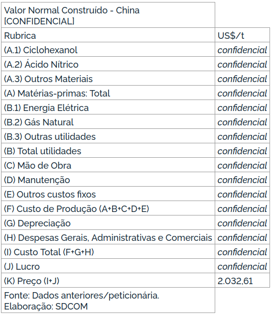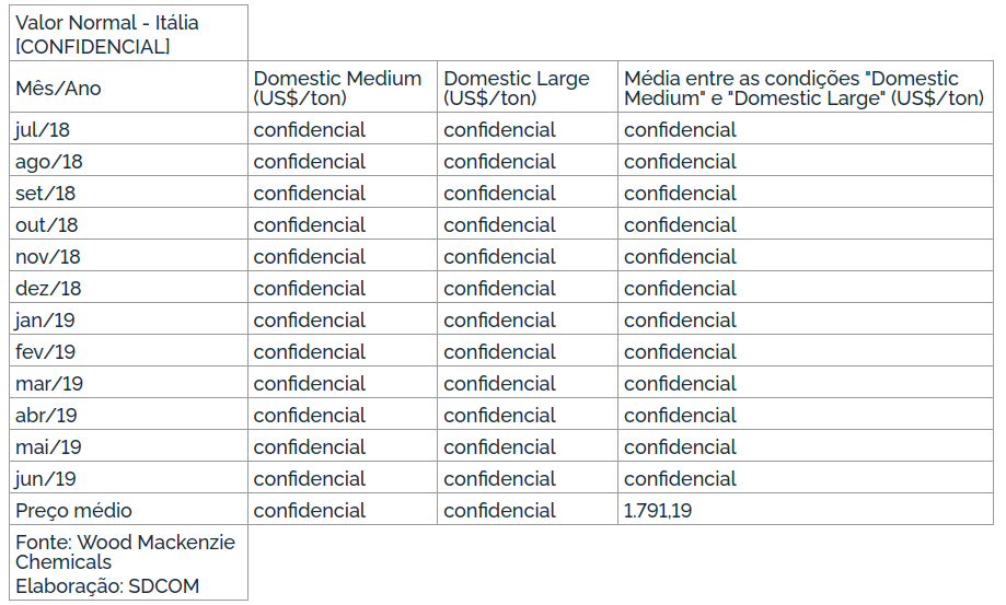 Ressalte-se, entretanto, que no caso da Europa Ocidental, a publicação não divulga dados de maneira segregada por país, mas os dados consolidados. Todavia, importante mencionar que as origens sujeitas à medida, Alemanha, França e Itália são os únicos produtores de ácido adípico nessa região e, portanto, os preços médios divulgados são baseados nos preços praticados por esses três países.