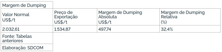 Assim, conclui-se que, embora o direito antidumping imposto pareça ter neutralizado o dano causado pelas importações sujeitas à medida, a sua não renovação levaria muito provavelmente à retomada do dano causado pelas importações com indícios de continuação de dumping, no caso da China, ou de retomada de dumping, conforme apurado para as demais origens.