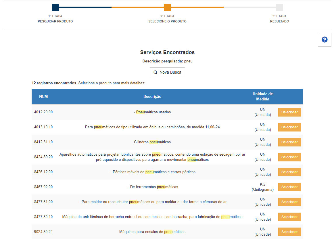 através de sua NCM ou descrição.