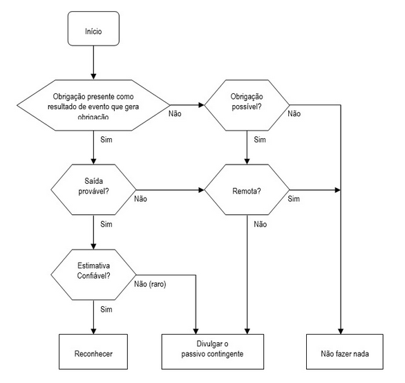 Conclusão - Nenhuma provisão é reconhecida (ver itens 15 e 16). A questão é divulgada como passivo contingente, a menos que a probabilidade de qualquer saída seja considerada remota (item 86).